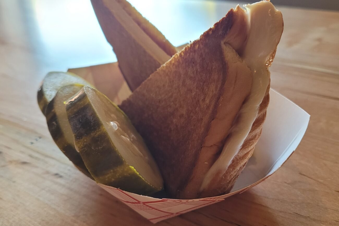American cheese, Martin's Potato Bread with Terrapin Ridge Farms Nashville Hot Spice Mustard!